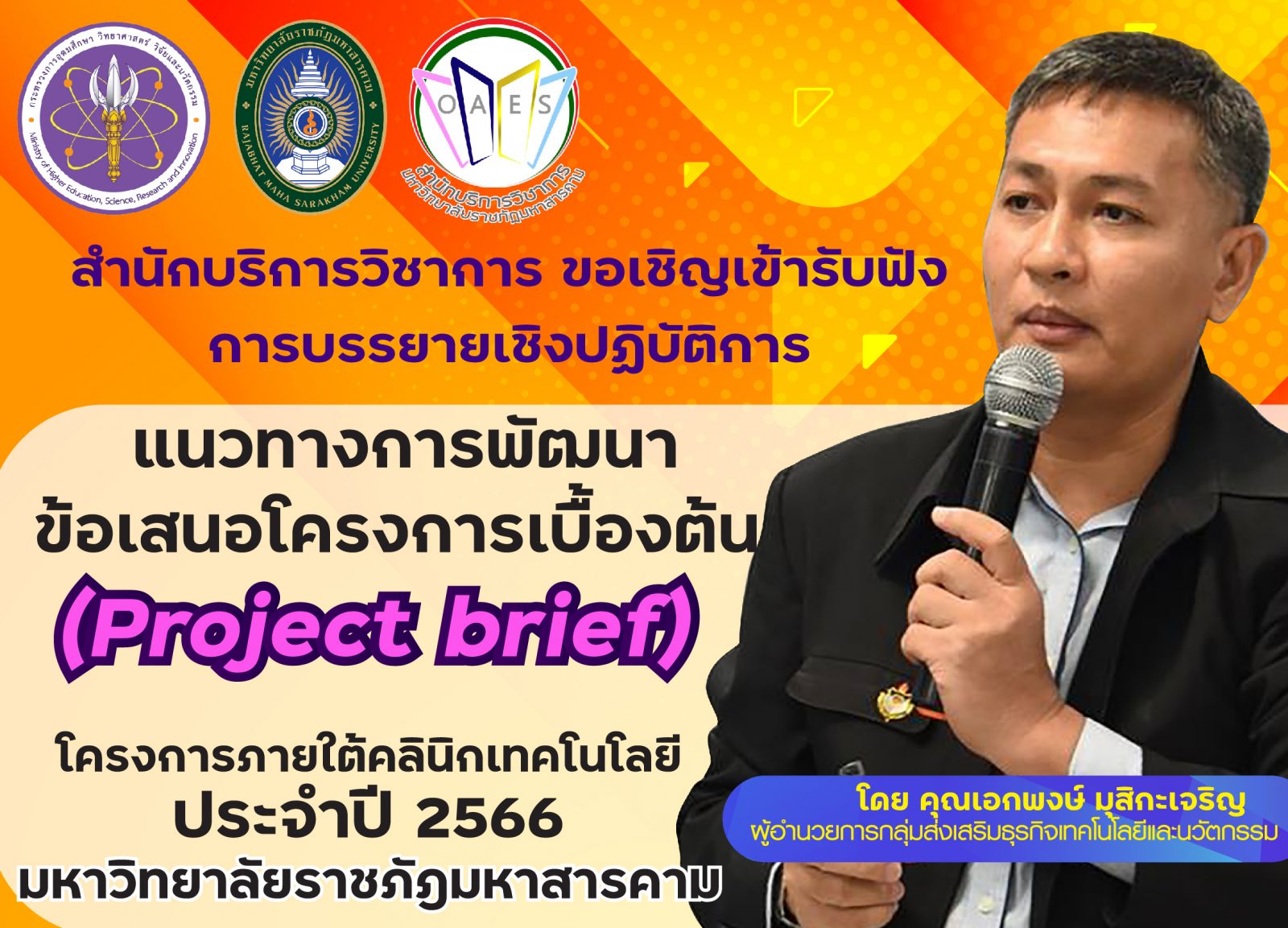 ขอเชิญบุคลากรมหาวิทยาลัยราชภัฎมหาสารคามและผู้ที่สนใจ เข้าร่วมฟังบรรยายเชิงปฏิบัติการ “แนวทางการพัฒนาข้อเสนอโครงการเบื้องต้น (Project brief) ประจำปี 2566