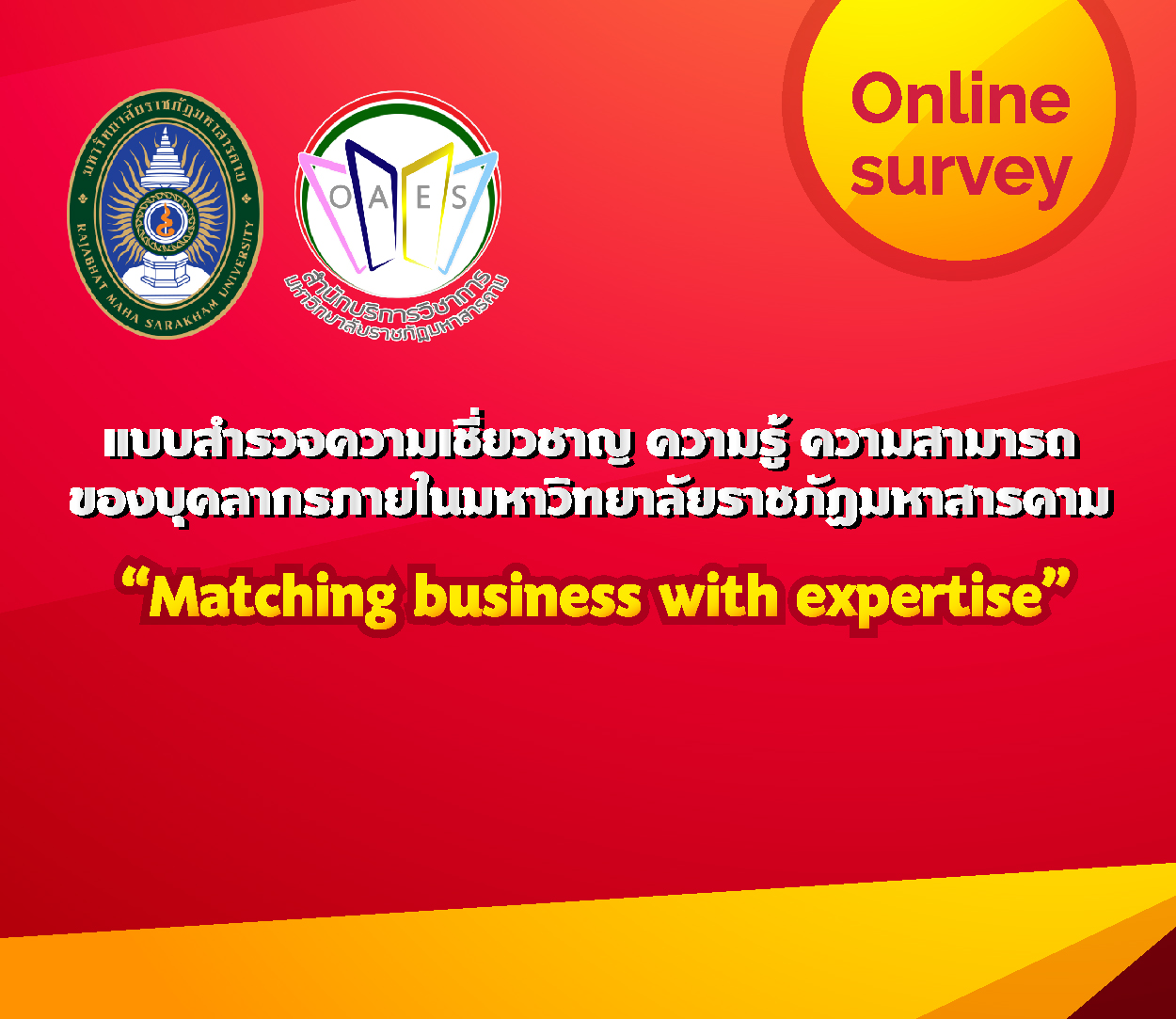 สำนักบริการวิชาการ ขอเชิญทุกท่านตอบแบบสำรวจความเชี่ยวชาญ ความรู้ ความสามารถ ของบุคลากรภายในมหาวิทยาลัยราชภัฏมหาสารคาม