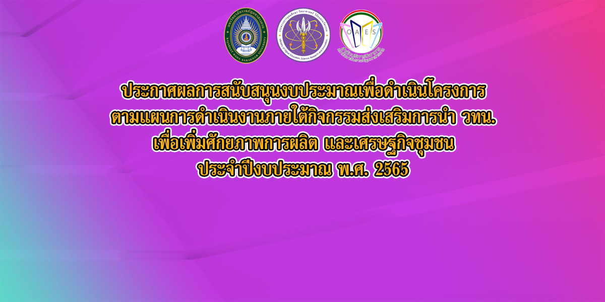 ประกาศผลการสนับสนุนงบประมาณเพื่อดำเนินโครงการตามแผนการดำเนินงานภายใต้กิจกรรมส่งเสริมการนำ วทน. เพื่อเพิ่มศักยภาพการผลิตและเศรษฐกิจชุมชนประจำปีงบประมาณ พ.ศ. 2565